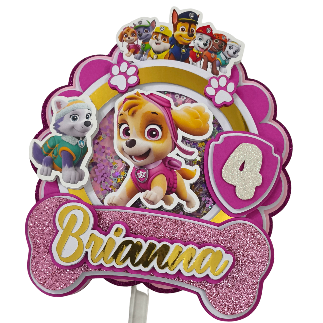 TOPPER PERSONALIZADO CON PERSONAJE DE PREFERENCIA, NOMBRE, EDAD O FELIZ CUMPLE, EN RELIEVE 3D Y RELLENO CON LENTEJUELAS, GLITTER, MOSTACILLA